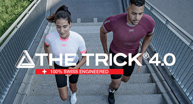 Koszulka została wyposażona w kilka najnowocześniejszych systemów, które jeszcze bardziej poprawiają wygodę jej użytkowania. System trójwymiarowych komór powietrznych, który zastosowano zarówno z przodu i z tyłu, wzbogaconych dodatkowo o technologię Thermosyphon, dzięki której będzie można zapomnieć o odczuwaniu wilgoci, a także jednocześnie uczucia przegrzania, jak i wychłodzenia. Unikalną technologią dla odzieży z tej serii jest specjalna struktura The Trick, dzięki której organizm szybciej rozpocznie schładzanie organizmu, by jeszcze bardziej zwiększyć jego wydajność. Kompresja X-Impact sprawia, że mięśnie mogą pracować w sposób naturalny oraz pomaga zwiększyć dopływ składników odżywczych do mięśni i stawów. Idealne dopasowanie koszulki The Trick 4.0 Running do sylwetki zapewnia ergonomicznie zoptymalizowany pas Ideo-Waistband oraz asymetryczne rękawy, dzięki którym koszulka nie będzie ślizgać się podczas ruchu, co skutkowałoby pojawianiem się nieprzyjemnych podrażnień skóry. Twój bieg będzie bardziej przyjemny również dzięki kołnierzowi posiadającej innowacyjną konstrukcję, który zapewni idealne dopasowanie.
