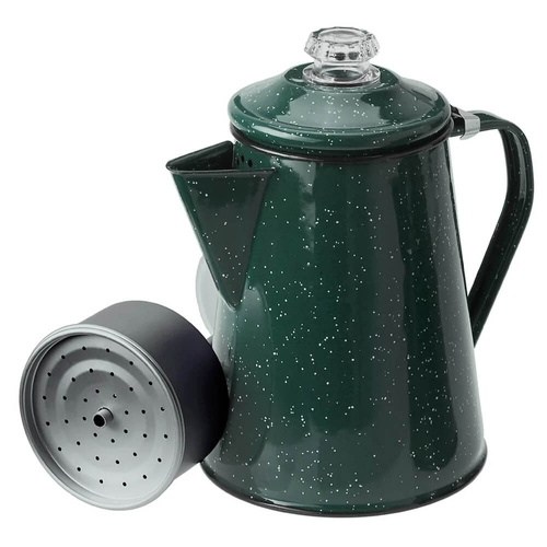 8 CUP PERCOLATOR to emaliowany dzbanek stanowiący praktyczne i stylowe rozwiązanie, które doskonale sprawdzi się zarówno w domowej kuchni, jak i podczas pobytu w domku kempingowym czy na biwaku. Pozwala w wygodny sposób zaparzyć aromatyczną kawę, której ilość wystarczy nawet na osiem filiżanek, co czyni go idealnym wyborem do wspólnego delektowania się napojem.