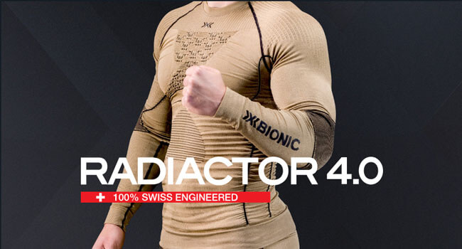 - RADIACTOR 4.0 to wyjątkowa linia bielizny na ekstremalne warunki, pozwalająca zachować poczucie lekkości oraz komfort termiczny. Zawiera liczne opatentowane przez markę X-BIONIC systemy, dzięki której jest maksymalnie wydajna w działaniu.