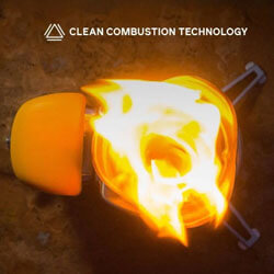 Clean Combustion to opatentowana technologia optymalizująca proces spalania biomasy, takiej jak drewno, gałązki czy pelety. Dzięki wbudowanemu wentylatorowi, który precyzyjnie kieruje powietrze do komory spalania, uzyskuje się bardziej efektywne i kontrolowane spalanie, co prowadzi do znacznego zmniejszenia emisji dymu i cząstek stałych. Technologia ta pozwala także na uzyskanie wyższej temperatury płomienia przy mniejszym zużyciu paliwa, co nie tylko przyspiesza gotowanie, ale również sprawia, że kuchnia jest bardziej ekologiczna i przyjazna dla środowiska. Dzięki niej kuchenka zapewnia czystsze, szybsze i bardziej energooszczędne gotowanie w warunkach turystycznych.