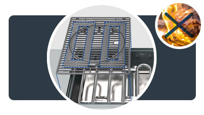 Umożliwia zachowanie odpowiedniej organizacji i ładu wśród wszystkich akcesoriów do grillowania. Ruszt o dużej powierzchni umożliwia jednoczesne przygotowywanie różnorodnych dań nawet dla dziesięciu osób. Kolejnym innowacyjnym rozwiązaniem jest zrezygnowanie z klasycznych osłon stalowych, a w zamian zastosowanie osłon bezpośrednio na ruszt. Dzięki takiemu rozwiązaniu tłuszcz omija palniki i wpada bezpośrednio do tacy z wodą, zamiast ulegać przypalaniu i przyczynianiu się do nadmiernego przypalania jedzenia, co jest nie tylko niesmaczne, ale i niezdrowe. Ponadto osłony posiadają nieco dłuższą budowę, dzięki czemu osłaniają ruszt przed wiatrem oraz redukują utratę ciepła, aby grillowanie było szybsze i bardziej ekonomiczne. Pod rusztem znajduje się wysuwana, napełniana wodą taca ociekowa, na której woda jest delikatnie podgrzewana przez palniki, aby para wodna oddziaływała na mięso, które dzięki temu pozostanie jednocześnie soczyste i chrupiące. Dodatkowy ruszt górny sprawi, że upieczona już żywność utrzyma odpowiednią temperaturę bez strachu o spalenie.