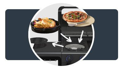 System Culinary Modular umożliwia niczym nieograniczoną wszechstronność przyrządzania pożywienia, ponieważ pozwala na zastosowanie dodatkowych akcesoriów, które znajdują się w ofercie marki Campingaz. Wystarczy wyjąć ruszt grilla pokrywkę, a następnie włożyć jedno z naczyń, np. patelnię - wok, rożno na kurczaka, kamień do pizzy bądź patelnię do paelli (wszystkie akcesoria do kupienia osobno). Dzięki temu będzie można znacznie poszerzyć wachlarz możliwych do przyrządzenia potraw, aby jeszcze bardziej zachwycić swoich bliskich.