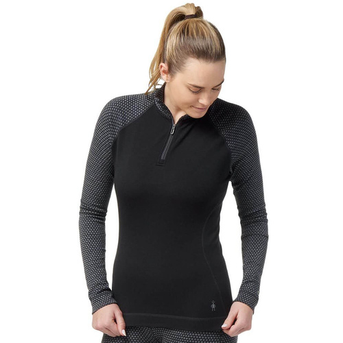THERMAL CLASSIC MERINO PATTERN 1/4 ZIP to wełniana koszulka damska o niezwykle estetycznym wyglądzie, która skutecznie reguluje temperaturę ciała, odprowadza wilgoć od skóry oraz pomaga utrzymać komfort cieplny podczas wysiłku i w spoczynku. Idealnie sprawdza się zarówno jako pierwsza warstwa pod odzież wierzchnią podczas intensywnych aktywności zimowych, jak i w codziennym użytkowaniu w mroźne dni, zapewniając ciepło, suchość i komfort przez cały dzień. Jej dopasowany krój dokładnie przylega do ciała, zapewnia swobodę ruchów, zmniejsza ucisk i maksymalizuje izolację cieplną. Oferuje najwyższą stosowaną przez markę Smartwool gramaturę, dzięki czemu idealnie sprawdza się podczas chłodnych bądź zimnych warunków.