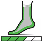 - elastyczna strefa w strefie podbicia, zapewniająca idealne dopasowanie skarpet;