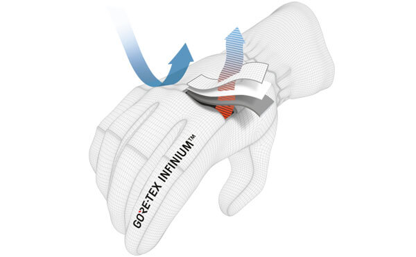 Membrana Gore-Tex Infinium posiada postać cieniutkiej warstwy zintegrowanej bezpośrednio z rękawicami. Warstwa ta składa się z miliardów porów, które są 900 razy większe od cząsteczek pary wodnej, co oznacza, że para z potu może bezproblemowo wydostawać się na zewnątrz, dzięki czemu skóra pozostaje przyjemnie sucha nawet wtedy, gdy organizm pracuje na wysokich obrotach. GTX Infinium zapewnia także całkowitą ochronę przed wiatrem, co zostało udowodnione podczas licznych rygorystycznych testów. Ochrona przed wiatrem jest bardzo istotna, ponieważ wiatr jest w stanie wychłodzić organizm jeszcze szybciej niż niska temperatura. Użytkownik ma więc pewność, że jego ciało jest odpowiednio zabezpieczone, dzięki czemu jest w stanie cieszyć się podejmowaną aktywnością.