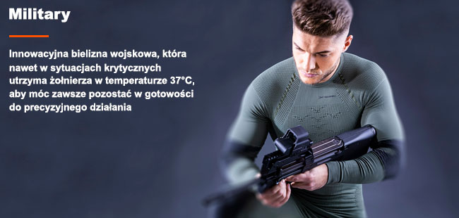 Bielizna wojskowa z serii Combat Energizer 4.0 sprawi, że będziesz w stanie sprostać każdemu wyzwaniu, a drżenie ciała będzie występować jedynie u Twojego przeciwnika. Dzięki niej bowiem wilgoć zostanie sprawnie odprowadzona na zewnątrz, ale nie w całości. Jest to bardzo istotne, ponieważ skuteczne uregulowanie temperatury ciała wymaga odpowiedniej ilości potu. Dzięki bieliźnie X-Bionic zdołasz wreszcie utrzymać ciepło, gdy na zewnątrz jest zimno, a także zostaniesz szybko ochłodzony, gdy zaczniesz się pocić przy cieplejszych warunkach. Twoja temperatura będzie zawsze wynosić tyle ile powinna - 37°C, aby każde stawiane przed Tobą wyzwanie zostało wykonane ze stuprocentową precyzją.
