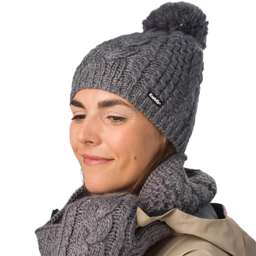 AFRA POMPON Beanie to czapka damska wyróżniająca się klasycznym, mięsistym splotem w formie efektownego warkocza, który nadaje jej ponadczasowego, eleganckiego charakteru idealnego na chłodne miesiące. Zwieńcza ją puszysty pompon, wprowadzający lekko sportowy, swobodny akcent i dodający całości wyrazistego uroku. Oferuje przyjemne ciepło nawet podczas bardzo mroźnych warunków, pozostając jednocześnie stylowym dodatkiem do codziennych i bardziej eleganckich zestawów.