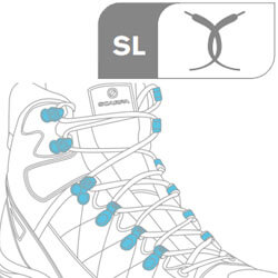 Speed Lacing to szybki i łatwy w obsłudze system wiązania, inspirowany rozwiązaniami stosowanymi w obuwiu wspinaczkowym. Składa się z precyzyjnie ukształtowanych haczyków i oczek, które umożliwiają płynne i bezproblemowe prowadzenie sznurowadeł. System ten jest zintegrowany z cholewką, co sprawia, że sznurowanie idealnie obejmuje stopę w każdej strefie. Dzięki temu dopasowanie buta staje się wyjątkowo precyzyjne i indywidualne. Speed Lacing zapewnia także doskonałą stabilność, umożliwiając pewne poruszanie się nawet w trudnym, technicznym terenie.